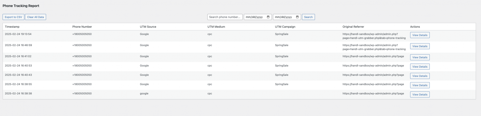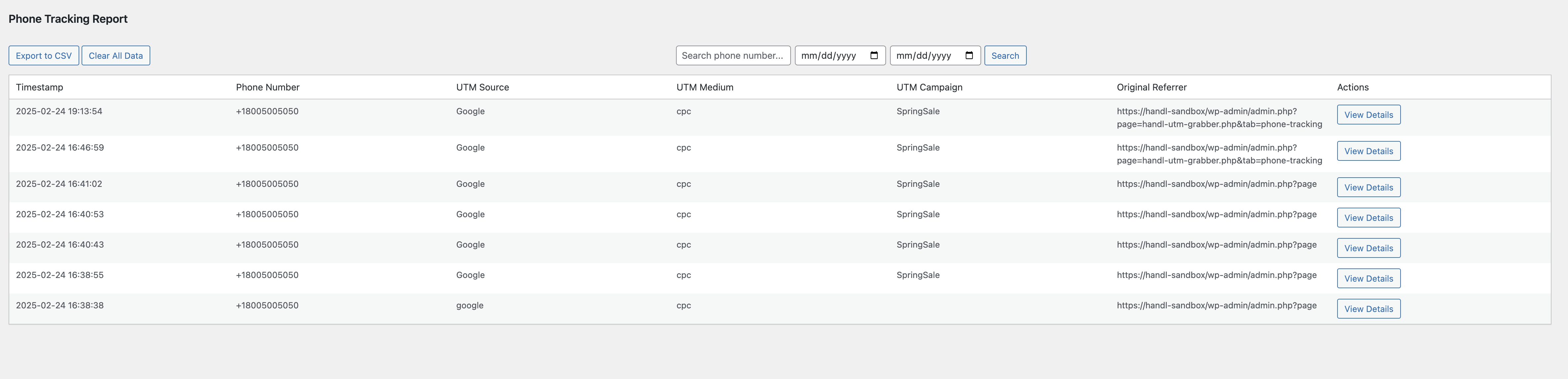 • Navigate to WordPress Admin → UTM → Phone Tracking