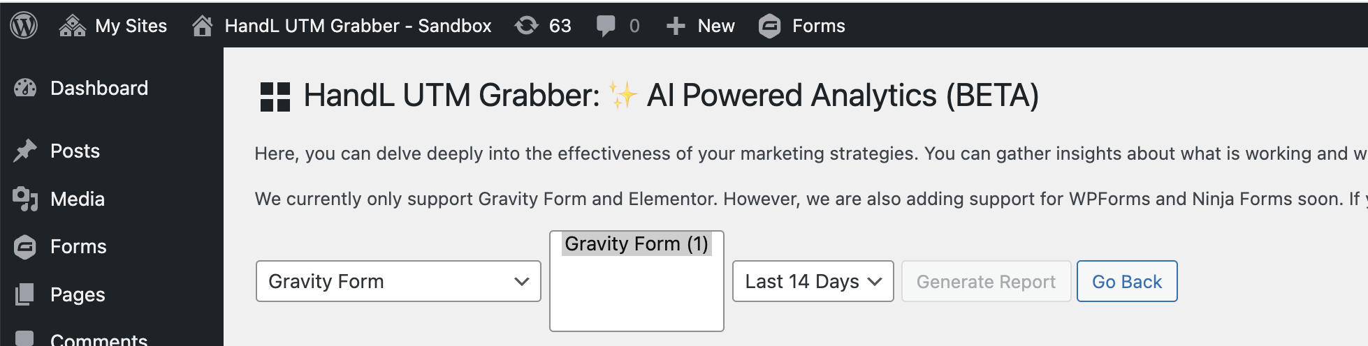2. Select your form plugin, specific forms, and date range in just a few clicks.