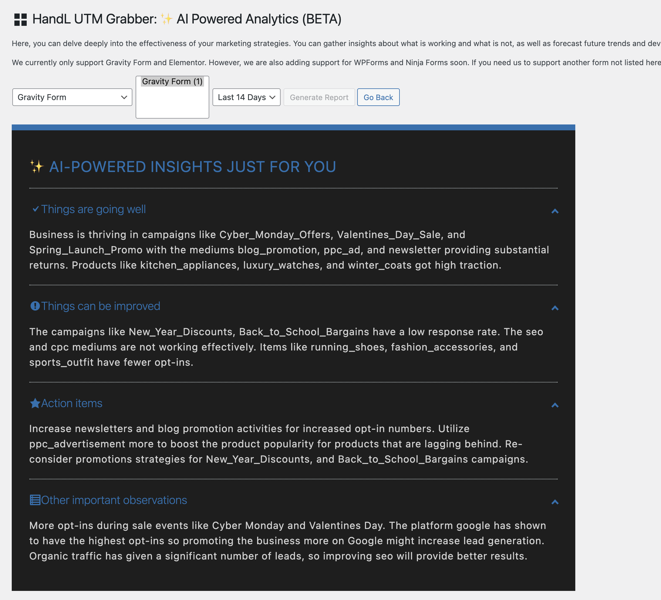 Experience the power of Artificial Intelligence (AI) with our new tool, UTM Grabber. This state-of-the-art plugin is a favorite among top businesses across the globe for UTM (Urchin Tracking Module) tracking. Now, we have integrated an AI-powered reporting insight tool directly into WordPress.