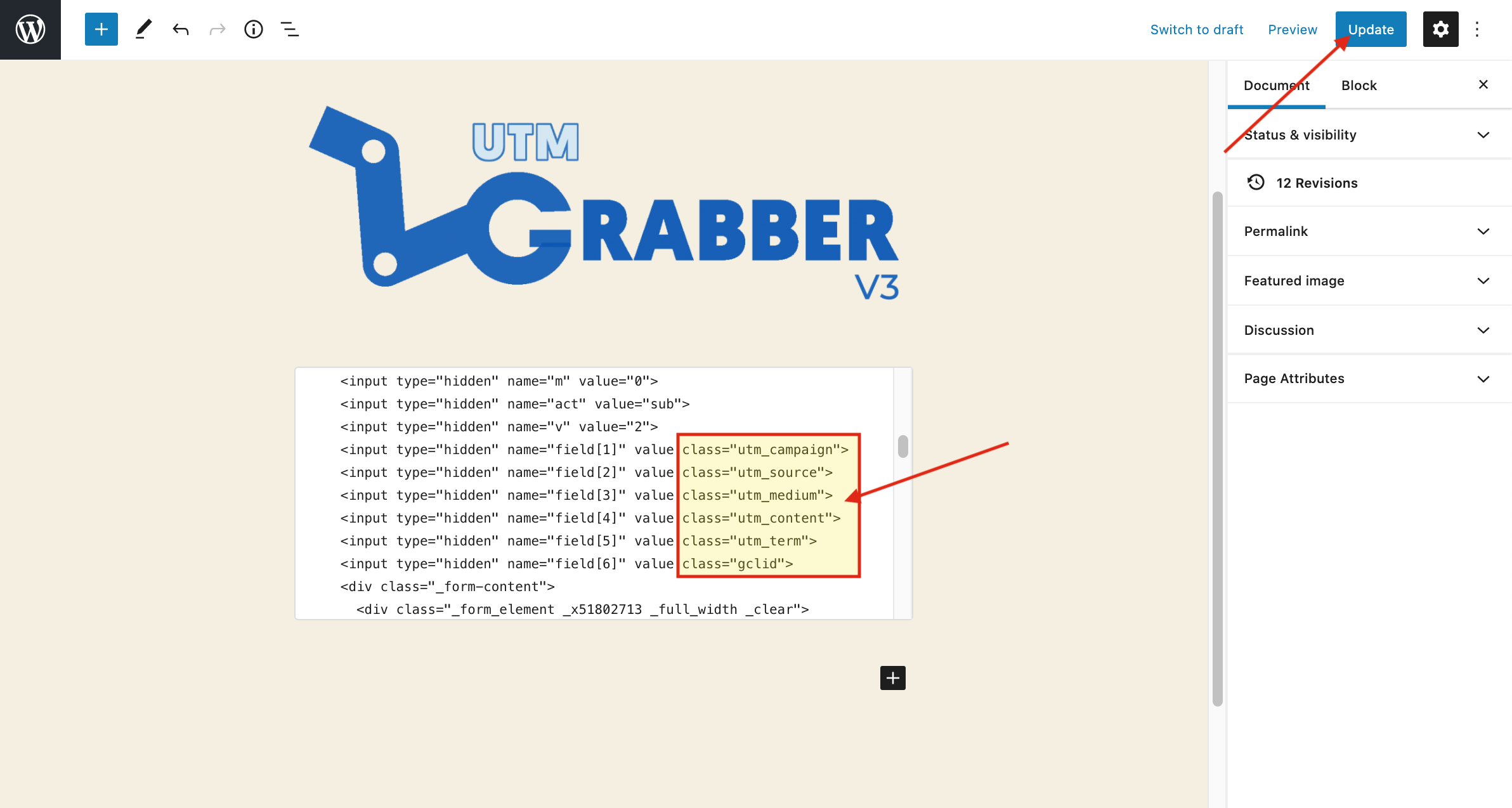 9.Add Class Variable to Your Hidden Fields for detect UTM's