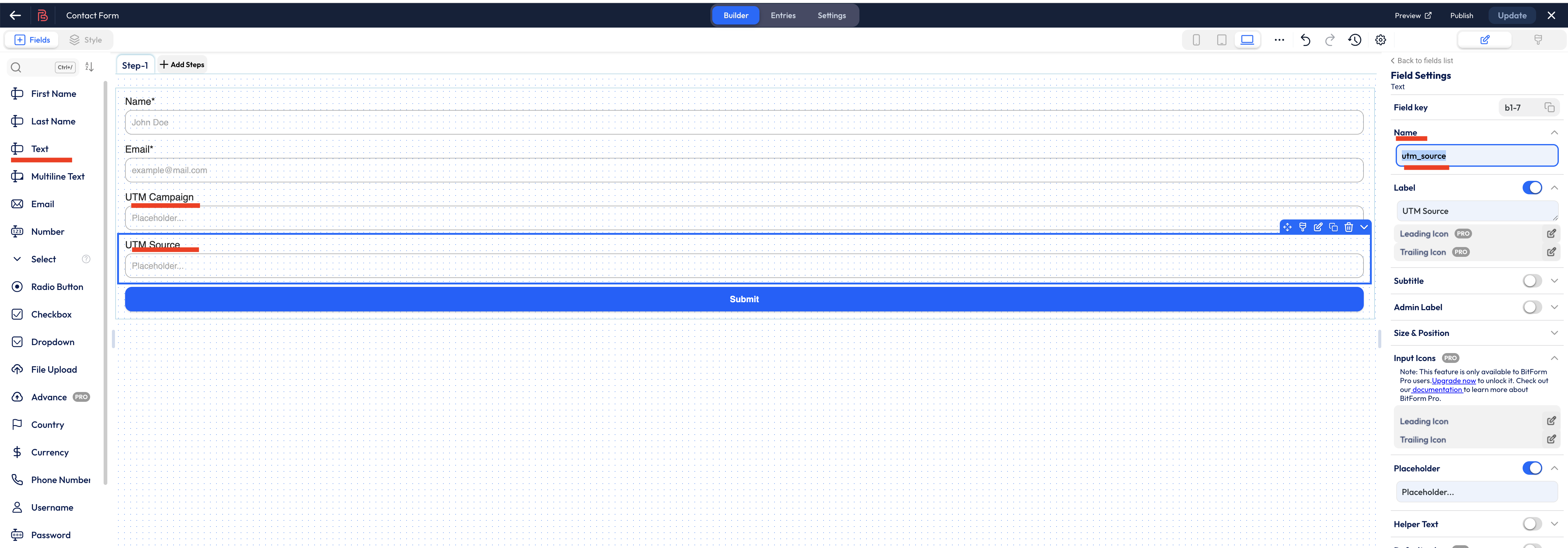 We have shown examples for utm_campaign and utm_source, but you can add all parameters as hidden fields to track them effectively.