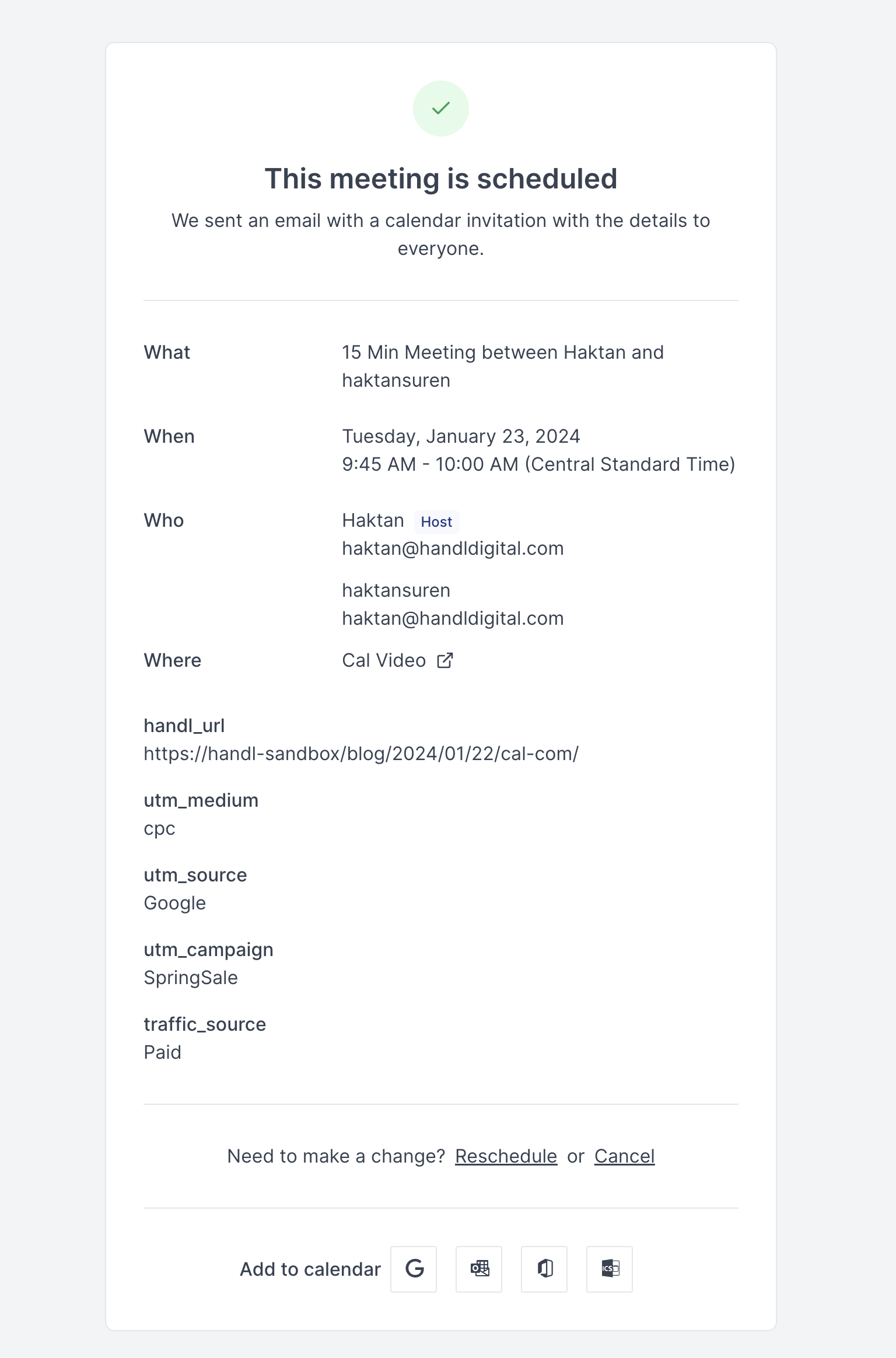 After that, test it and voila! You will have all the UTMs in your booking as shown below.