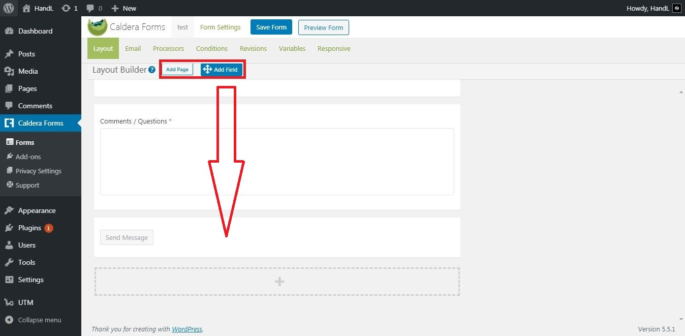 5.Click "Add Page", then drag the "Add Field" button to the empty page