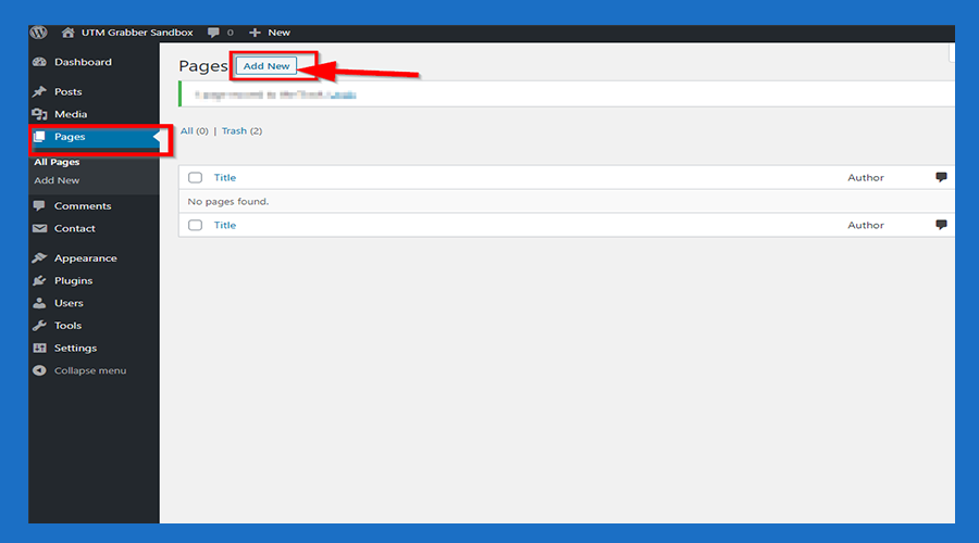 6.Click 'Pages' and then click the 'Add New' button