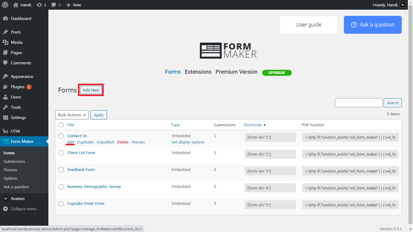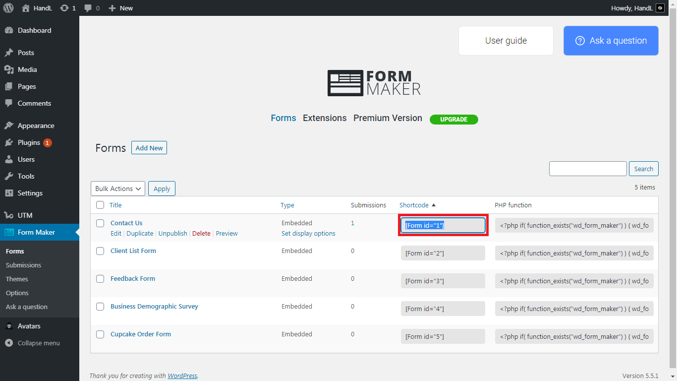 6.Copy the shortcode of your form