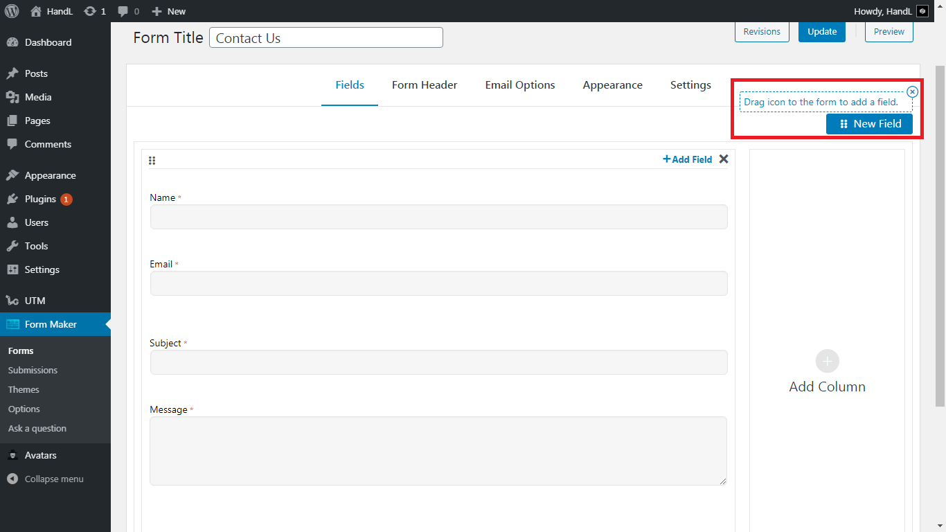 3.Drag the "New Field" button to the form field