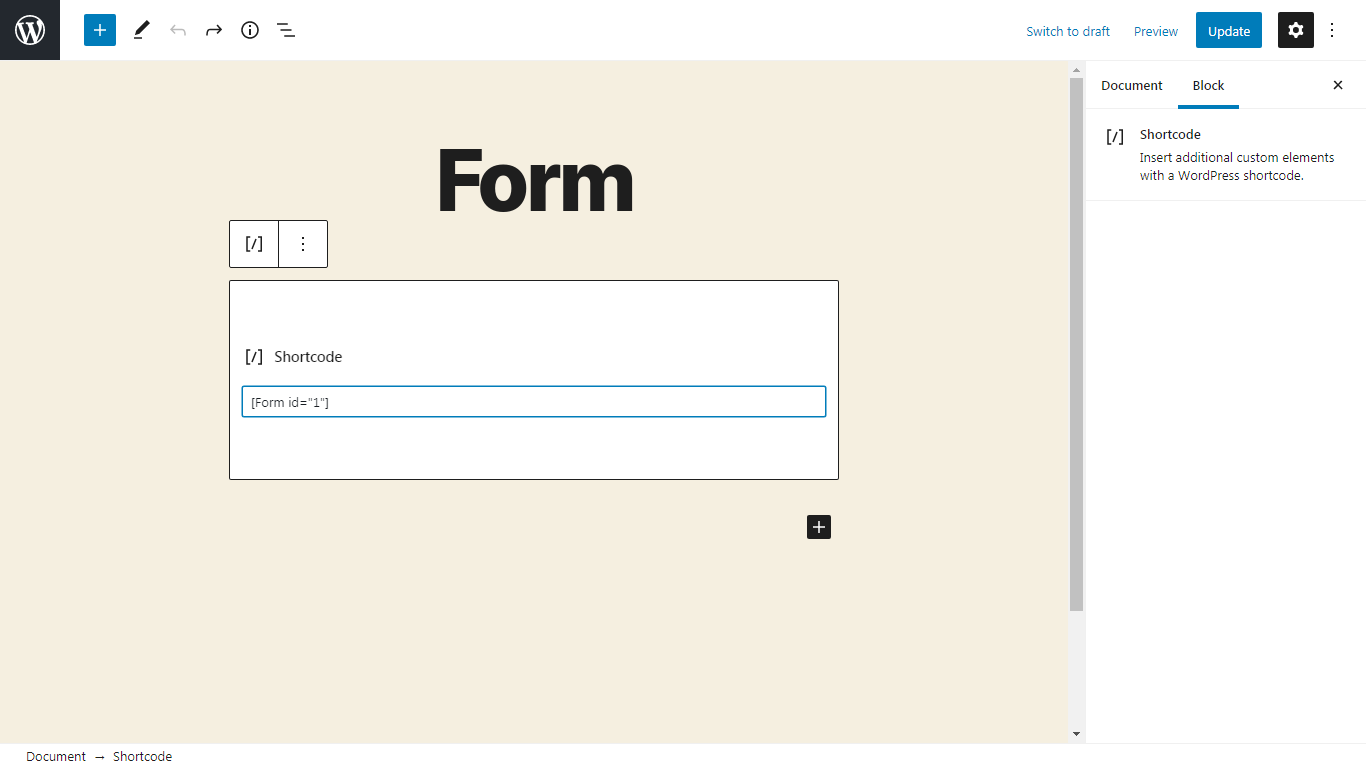 8.Paste the shortcode and update the page