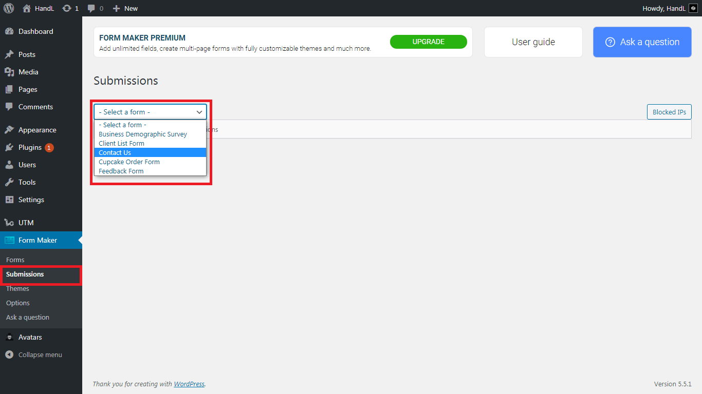 10.Open "Submissions" and select the form