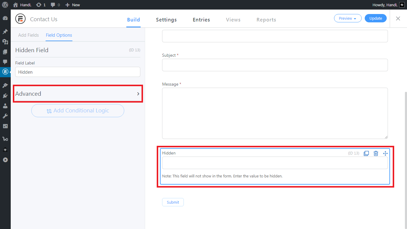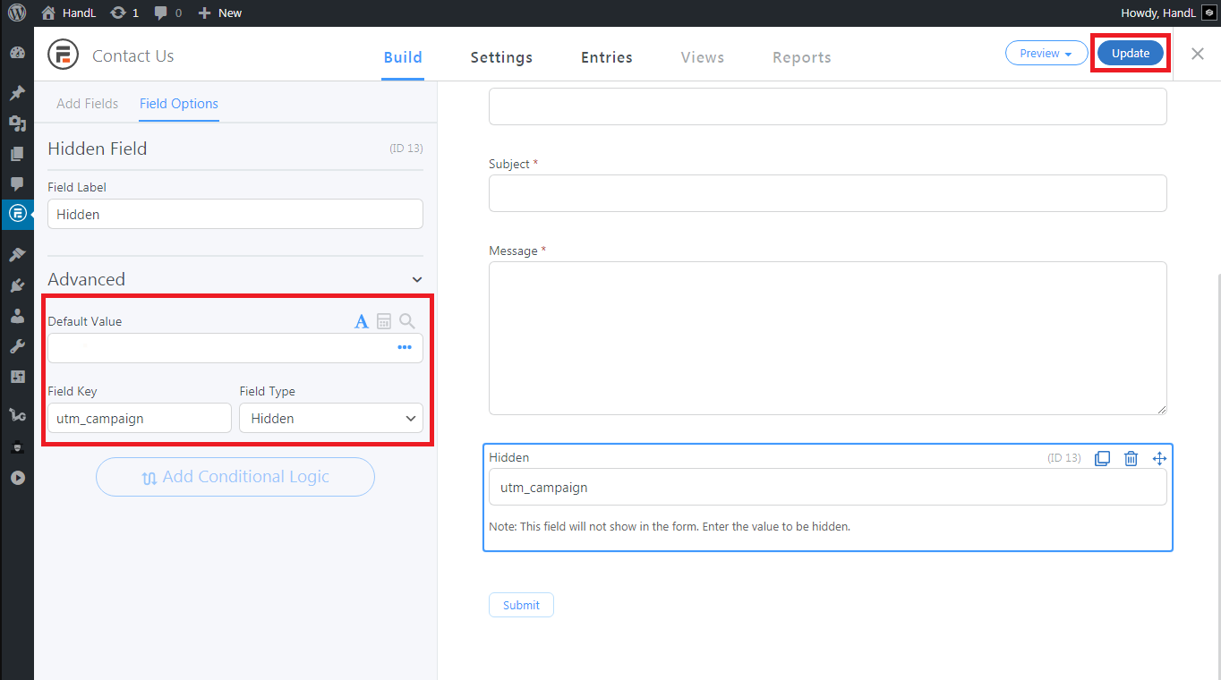 6.Type the "Field Key" like that and click "Update"