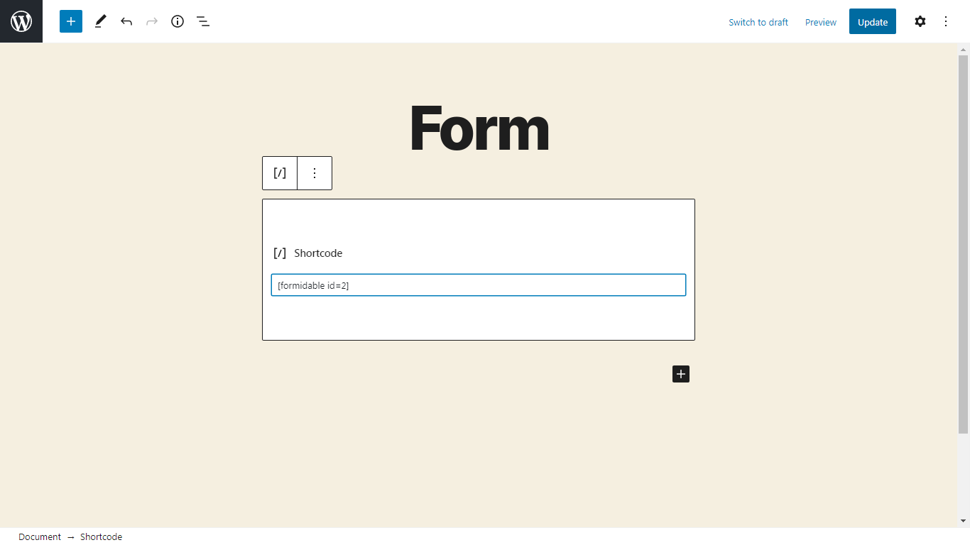 9.Paste the shortcode and update the form