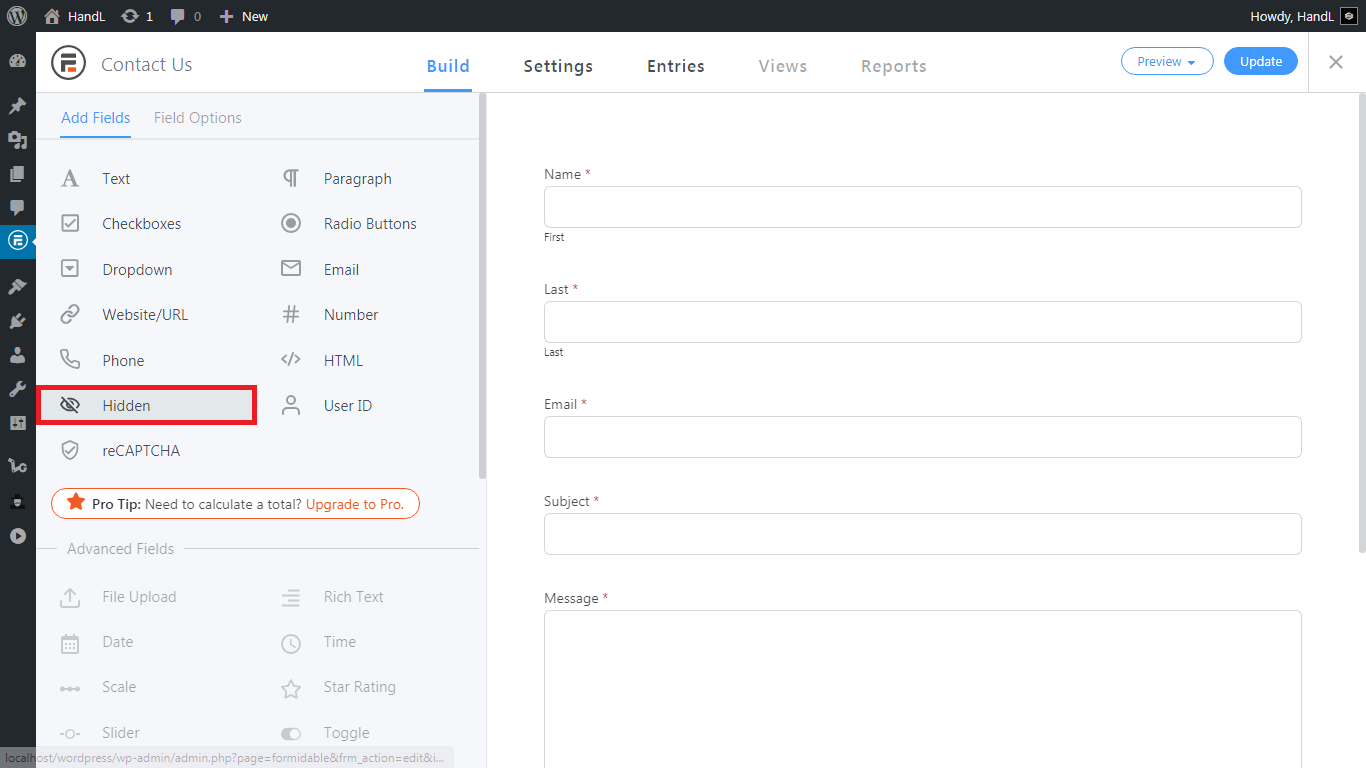 6.Type the "Field Key" like that and click "Update"