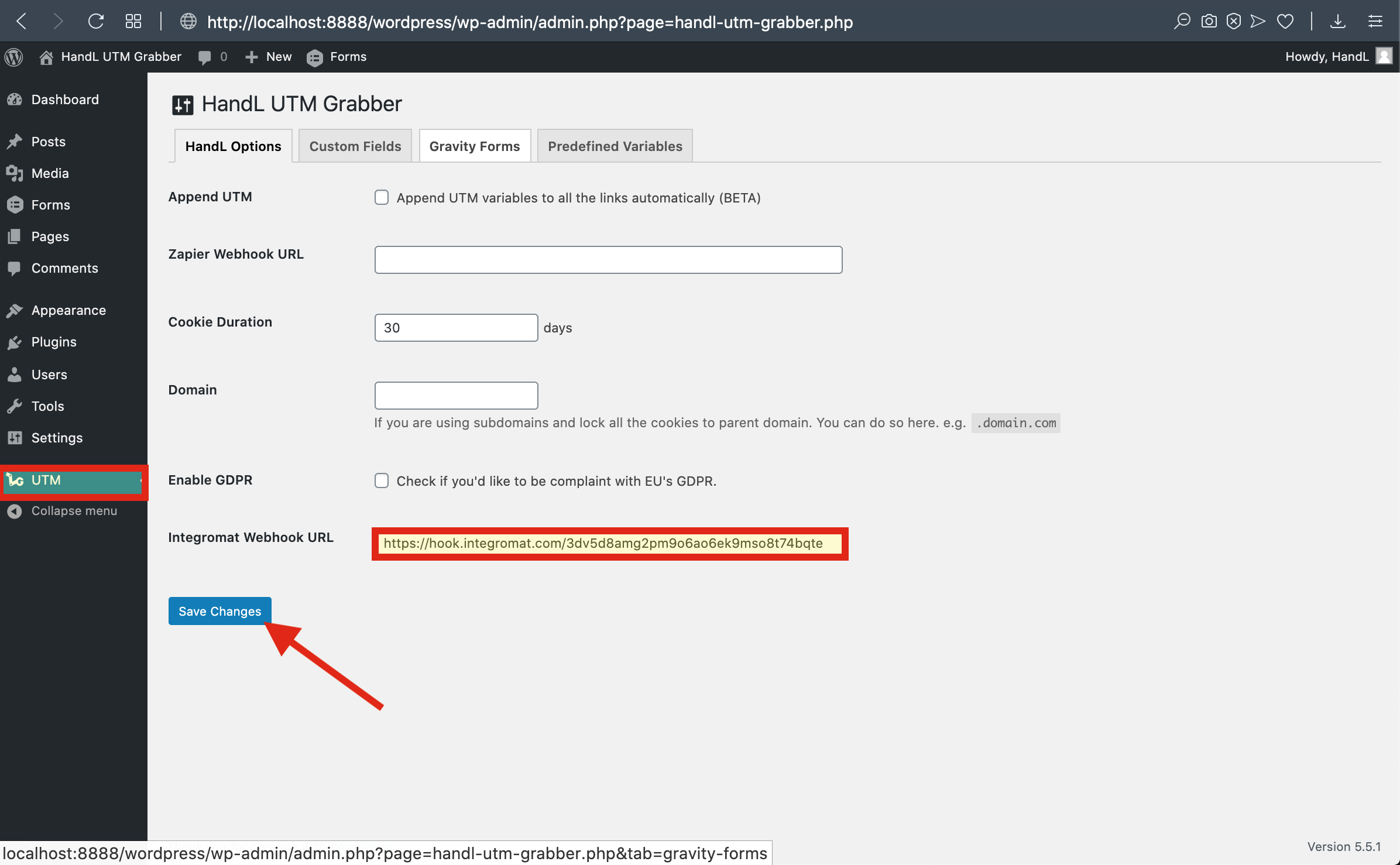 6-) Paste The Webhook URL that you copied before to the Integromat section From UTM Settings