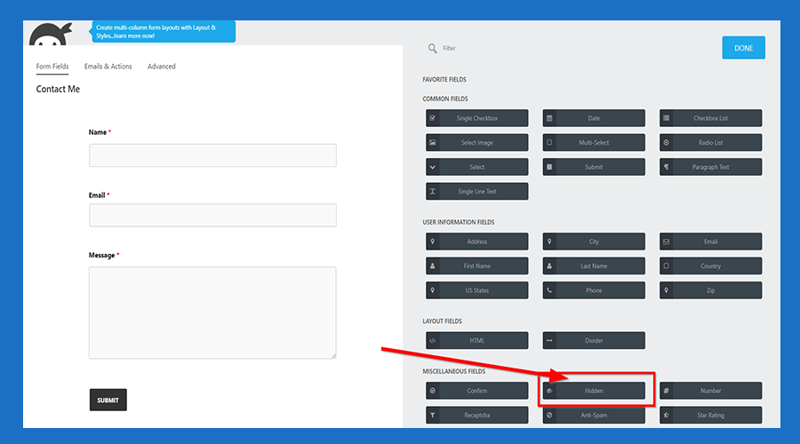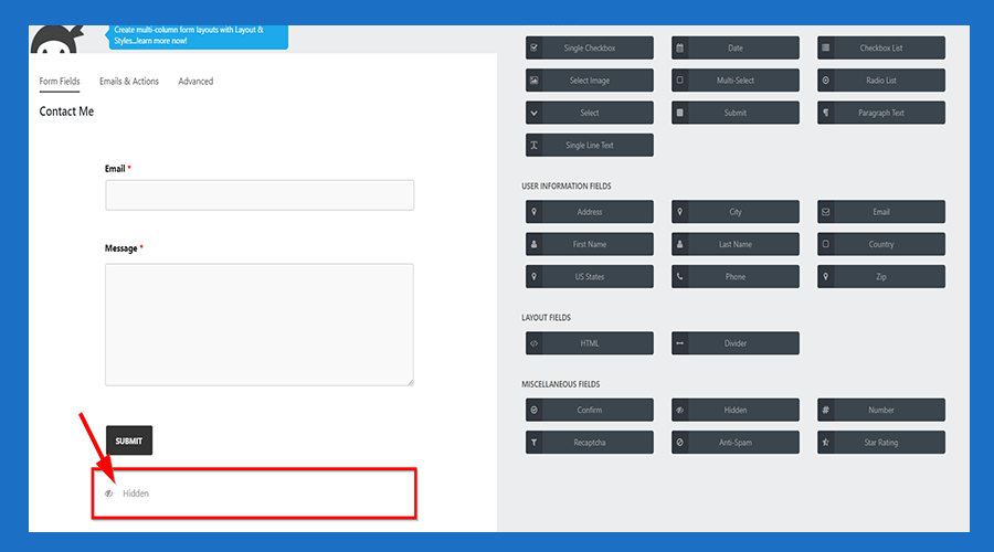 4. Hidden box shows down at the bottom of the form