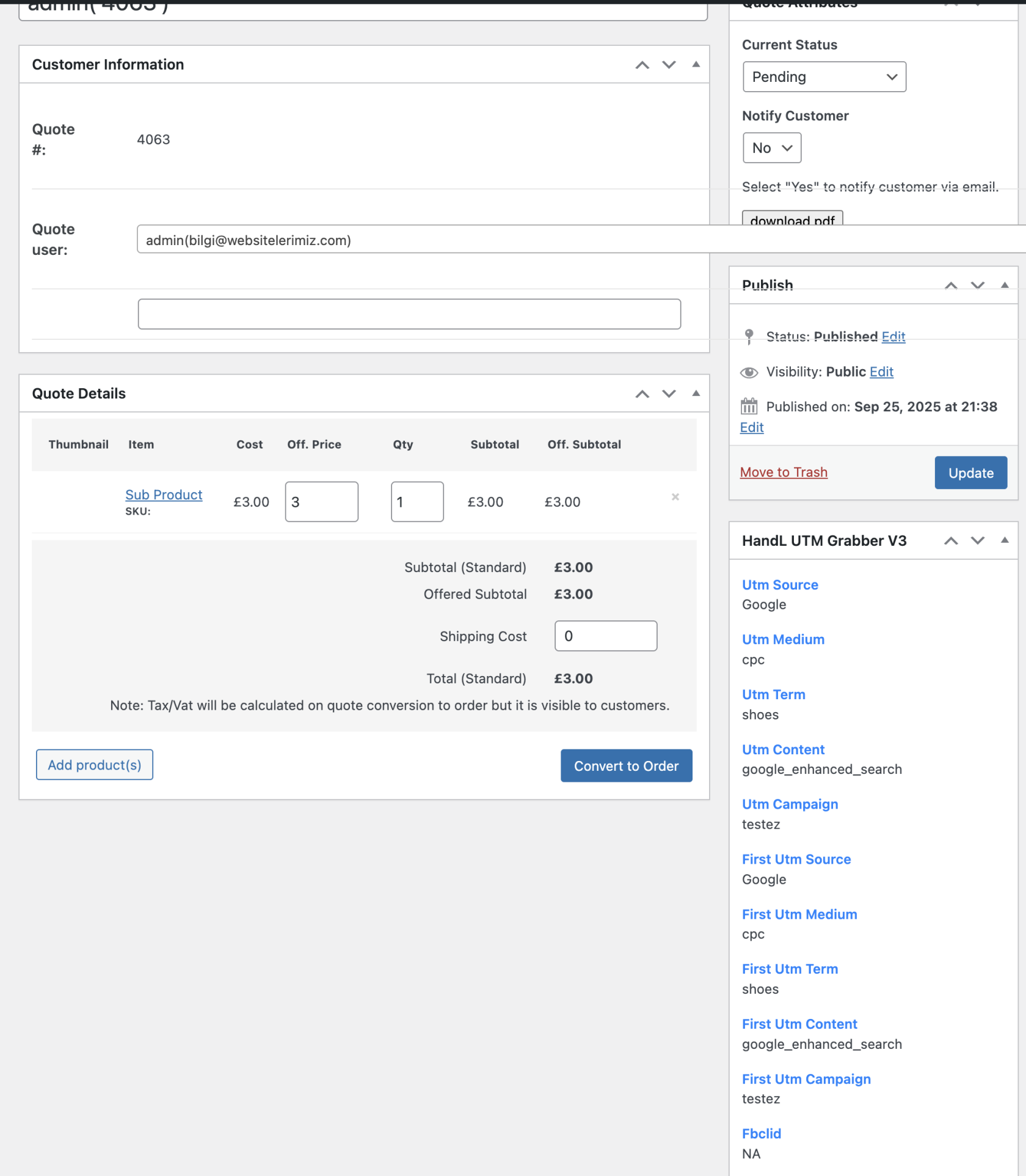 This integration adds UTM tracking capabilities to the WooCommerce Request a Quote plugin, allowing you to capture and store UTM parameters when customers submit quote requests.