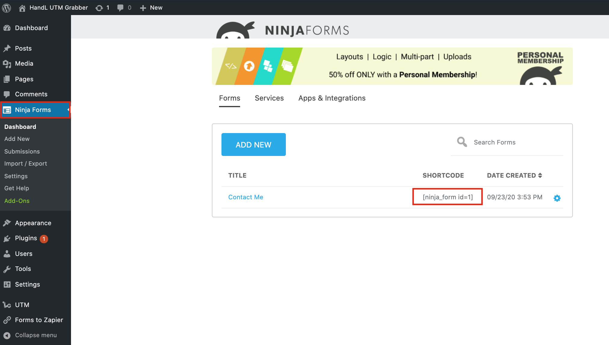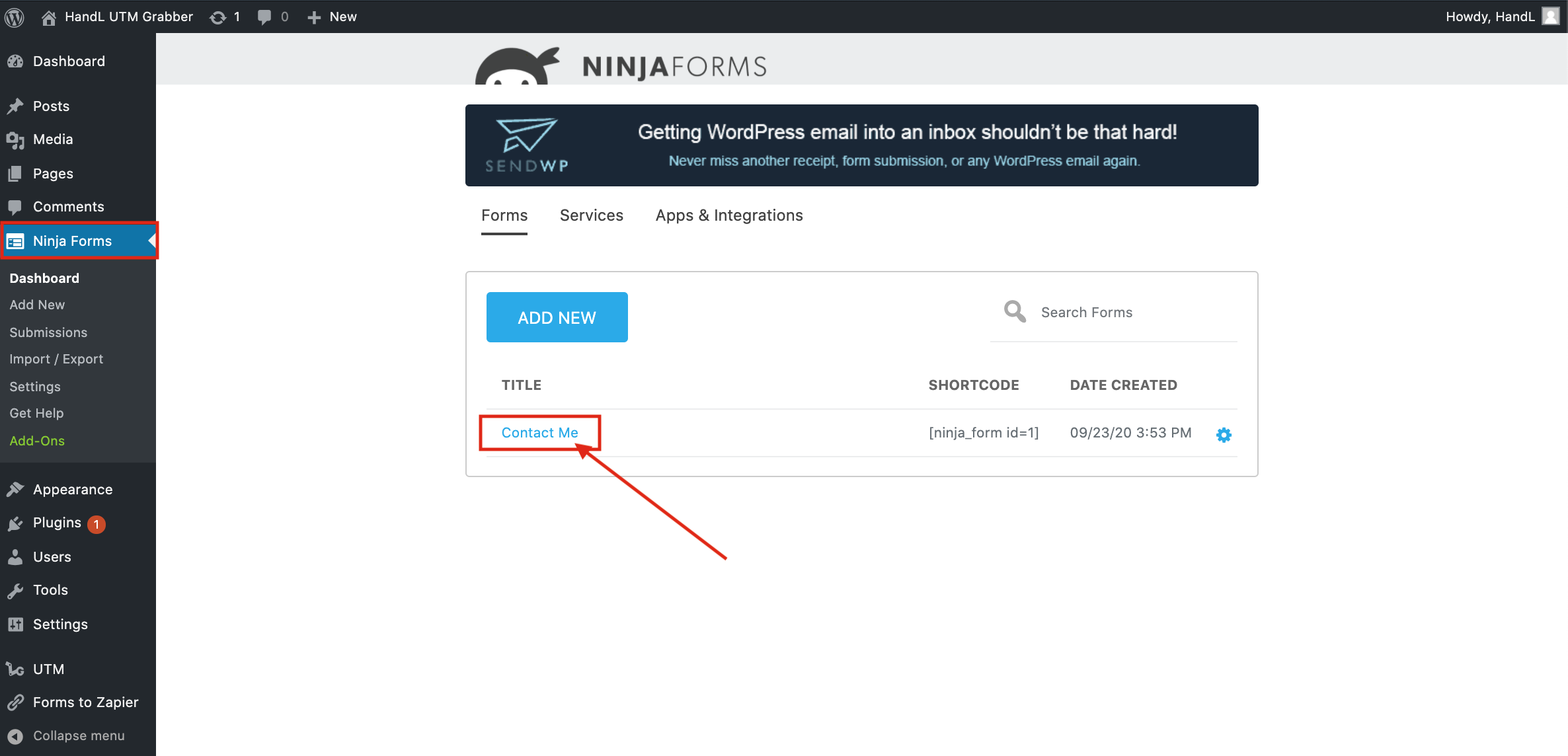 Ninja Forms to Zapier Integration Screen Shot Tutorial