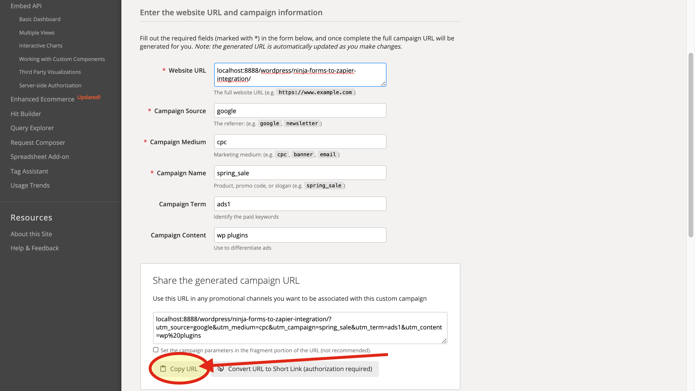 12-)Go to Campaign URL Builder and copy the URL that it generated to fill your UTM's for test it