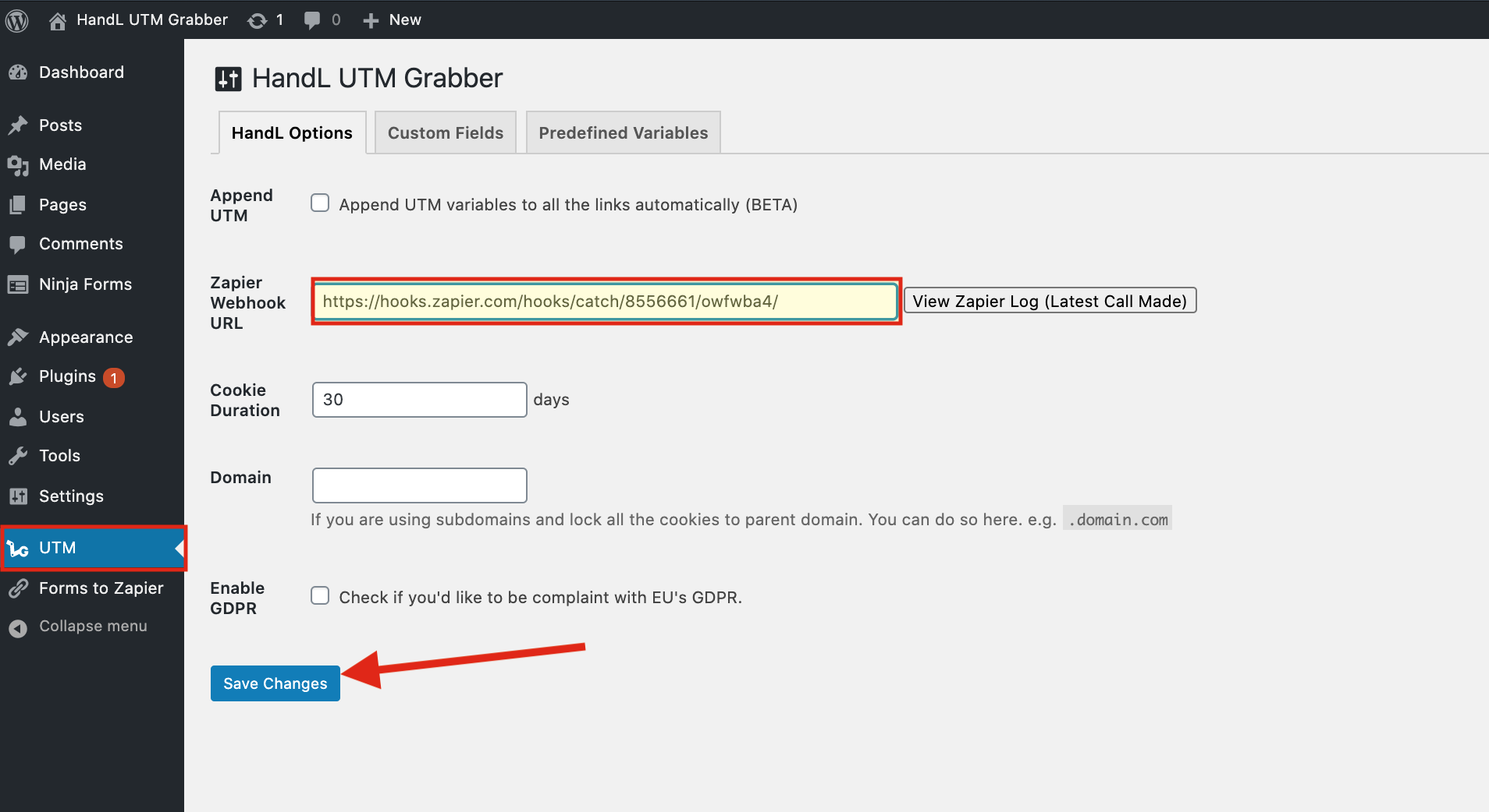 8-)Paste it to the Webhook URL section on the UTM Bar and Save Changes
